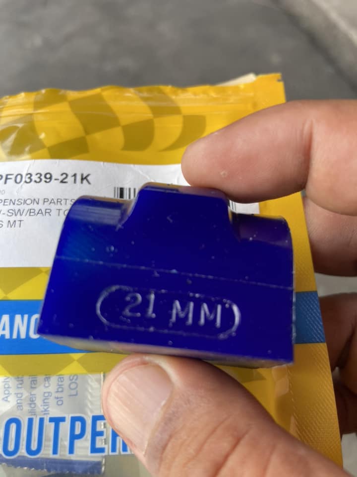 บูชของตัว Eibach ให้มาบางครั้งจะมีปัญหาครับ แนะนำให้ซื้อบูช Powerflex มาใช้แทนครับ คิดว่าน่าจะมีไซส์สำหรับ Eibach นะครับ