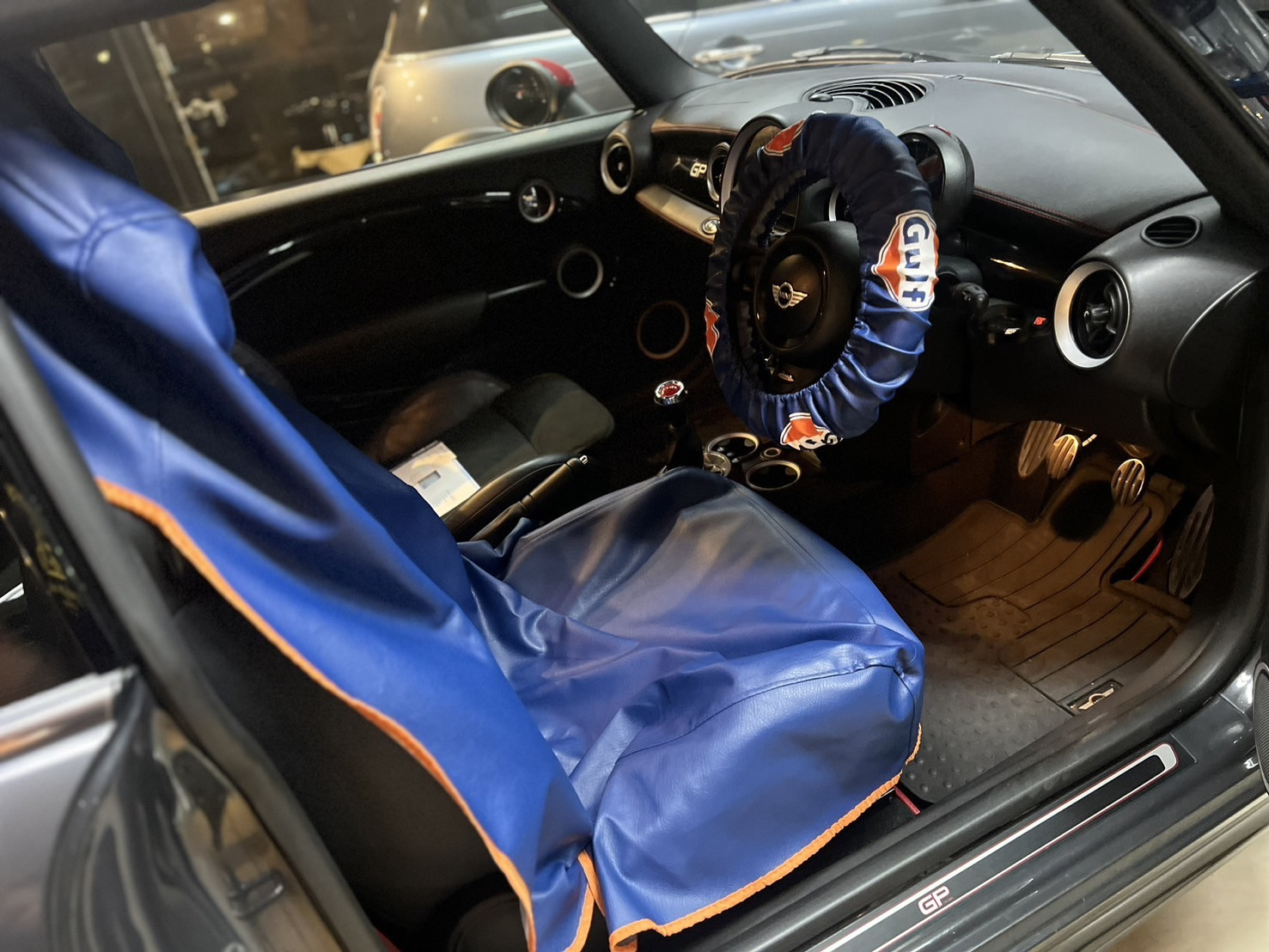 1 สองรูปแรก ผ้าคลุมเบาะและพวงมาลัยคันมินิ อาจคล้ายผ้าคลุมของช่างตอน service อยู่ในอู่ (เพราะได้แถมจากน้ำมันเครื่อง)