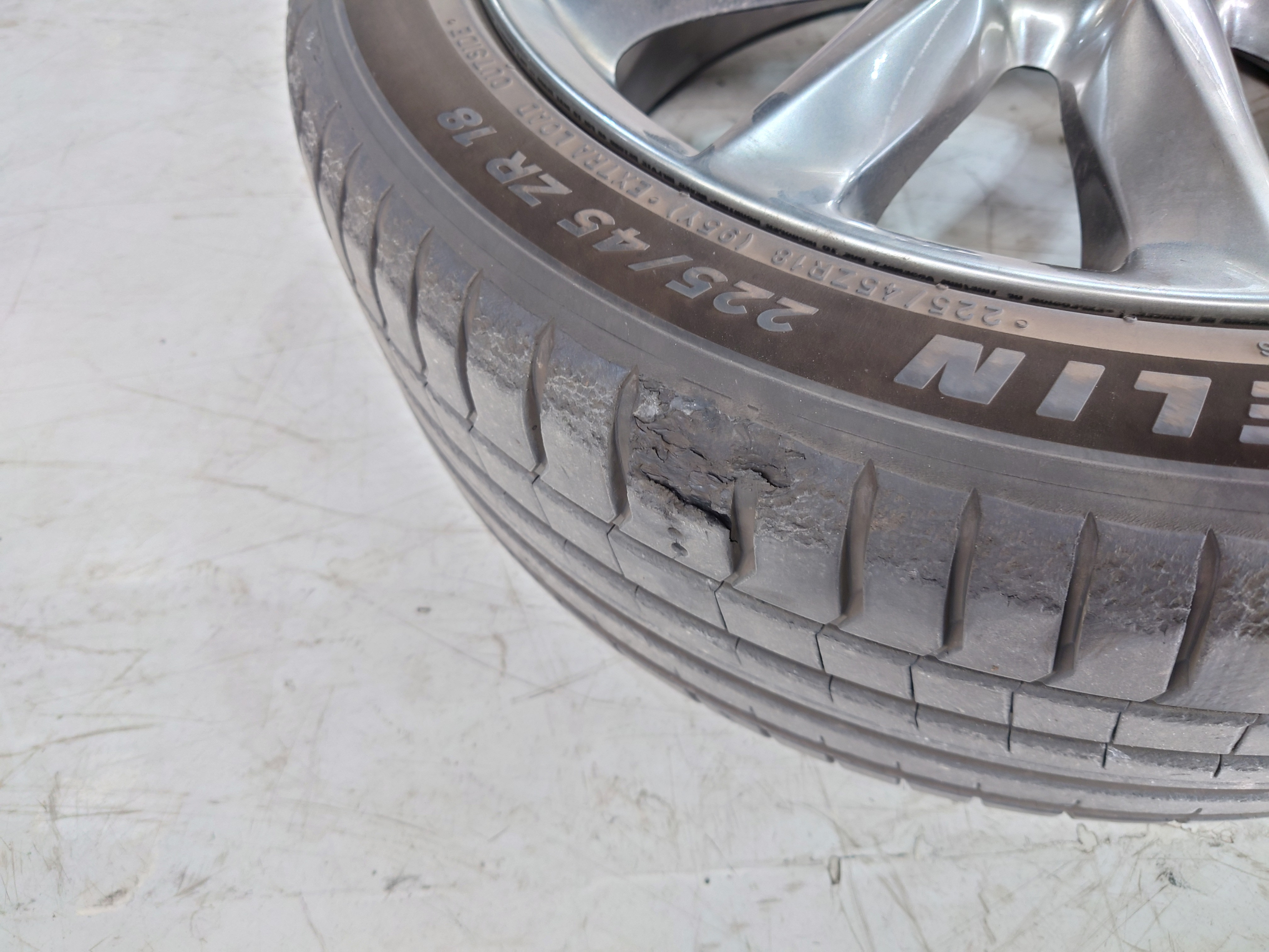 หลังจากขับจบทั้ง 4 session ร่องยางยังเหลือเยอะอยู่ครับ แต่ยางหน้าซ้ายที่รับโหลดเยอะสุด มีรอยฉีกและมีเนื้อยางหลุดไปบางส่วน ตามรูป
