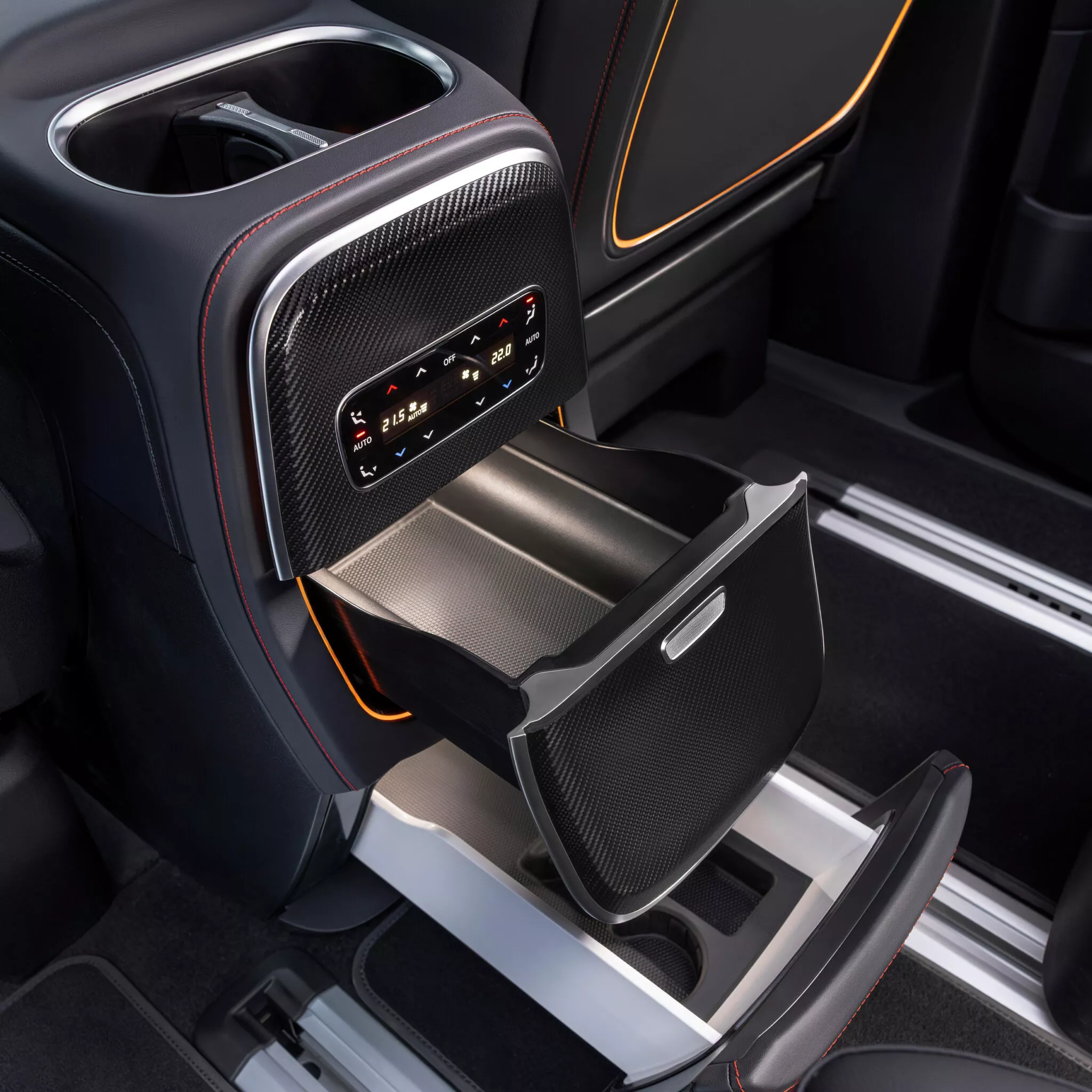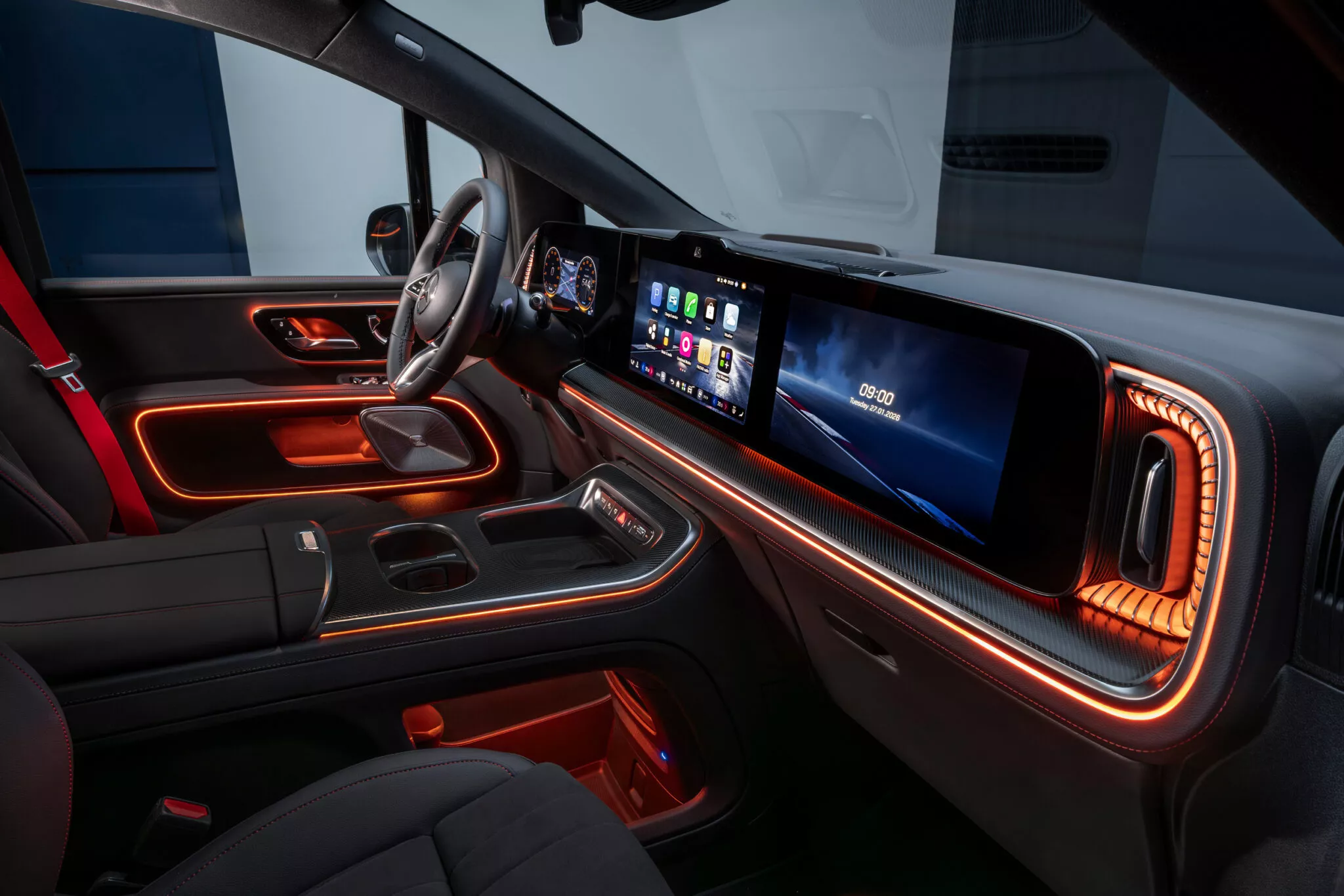 งานออกแบบภายใน ติดตั้งจอแสดงผลขนาด 10.25 นิ้ว และจอแสดงผลคู่ขนาด 14 นิ้ว และจอเพดานขนาด 31 นิ้ว
