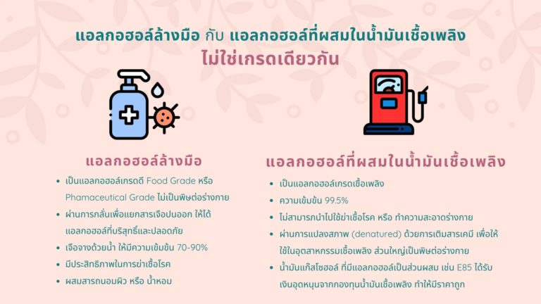 Ethanol ที่เอามาผสมน้ำมันเติมรถ ส่วนใหญ่เป็นผลผลิตจากโรงงานน้ำตาล ซึ่งการกลั่น Ethanol เพื่อการนี้ไม่มีกระบวนการในการกรองสิ่งปนเปื้อนที่อาจมีอันตรายต่อคนครับ และการกรองไม่ใช่ว่ามาทำทีหลังได้ แต่จะต้องใช้กระบวนการผลิตแบบอื่นที่ต้นทุนสูงกว่านี้ โดย Ethanol จากโรงงานเหล่านี้จะไม่มีการนำไปทำอย่างอื่นเด็ดขาดนอกจากเชื้อเพลิง