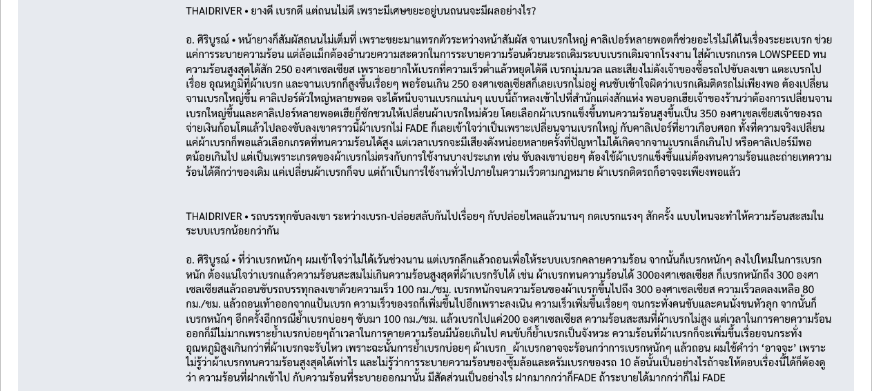 ข้อเสีย: ผมว่าทื่อไปหน่อยครับ วิ่งเร็วๆ กดเบรคแล้วความเร็วลดลงช้า ต้องกดหนักๆ เผื่อระยะเบรคไว้หน่อย