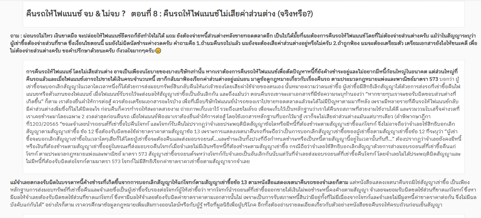 แต่พอเขาผ่อนไม่ไหว ก็ทิ้งรถ จะไปฟ้องเขา ฟ้องเอาอะไรครับ ในเมื่อทรัพย์สินเงินทอง เขาไม่มี