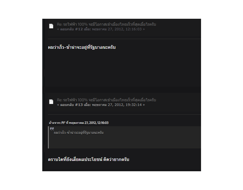 ปล.ตัวอย่างความเห็นของสมาชิคกลุ่มเราในปี 2012 ครับ ด่ารัฐฯว่าล้าหลัง ไม่สนับสนุน  หายไปไหนกันแล้ว ใช้ EV สักคันหรือยังก็ไม่รู้