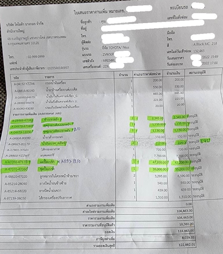 ผมเอาไปซ่อมอู่นอก ค่าซ่อมเรื่องปั๊มเบรก 8,000 บาท
