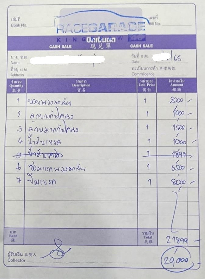 รวมค่าซ่อมอื่นๆ เรื่องพวงมาลัย และลูกหมากบางชิ้น net แล้ว 20,000 บาท