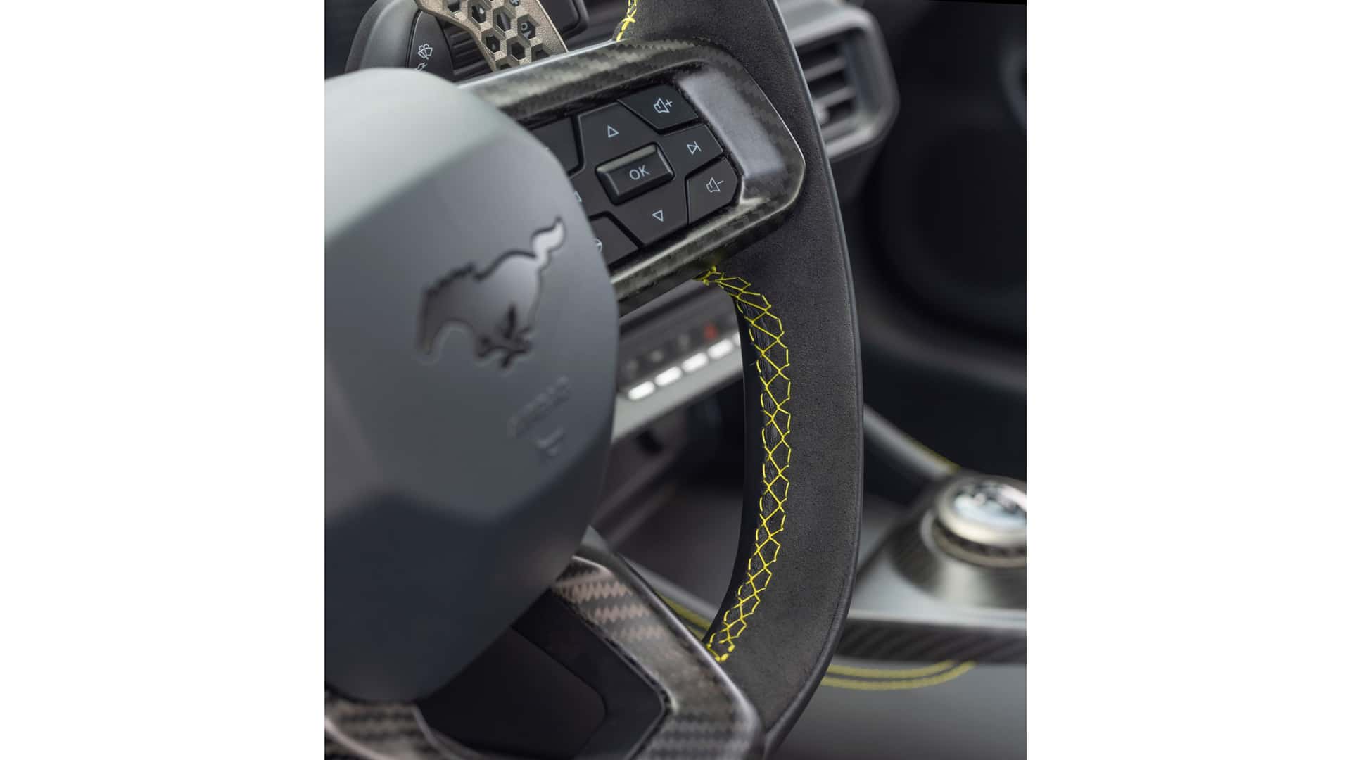 วัสดุตัวถังเป็นแบบ carbon fiber น้ำหนักเบาลงกว่ารุ่น Mustang GTD ประมาณ 6 kg