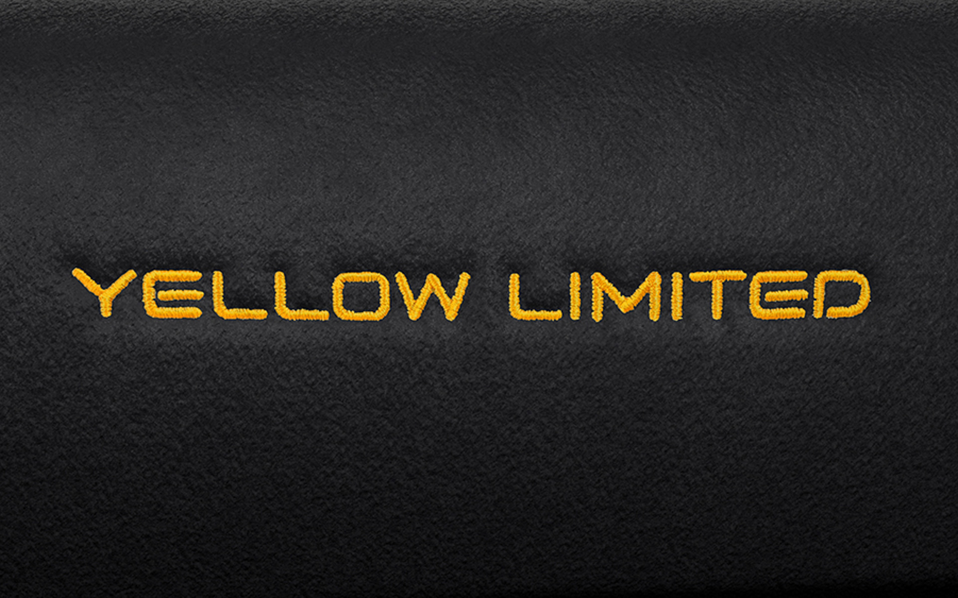 ภายในตกแต่ง โทนสีดำ stitching สีเหลือง ตกแต่งสัญลักษณ์ Yellow Limited