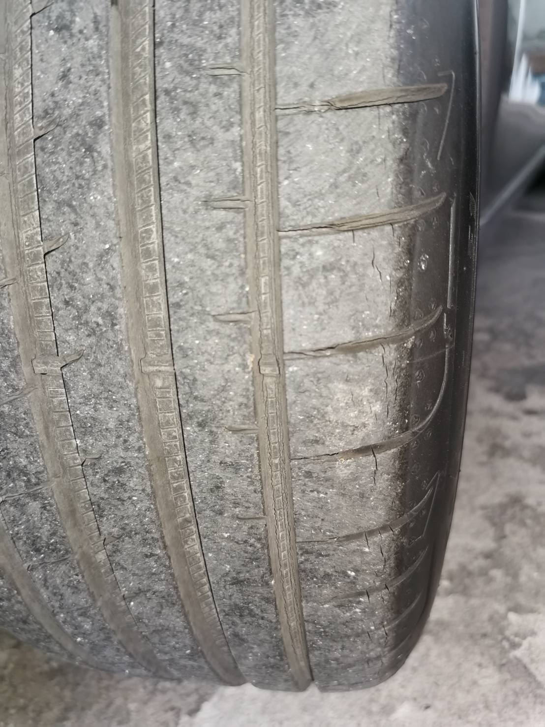 สะพานยางยังเหลือเยอะ แต่ขอบๆมีรอยแตกปริแล้ว ยางรุ่นนี้คงจะไม่เหมาะกับ style การขับคันนี้ของผม